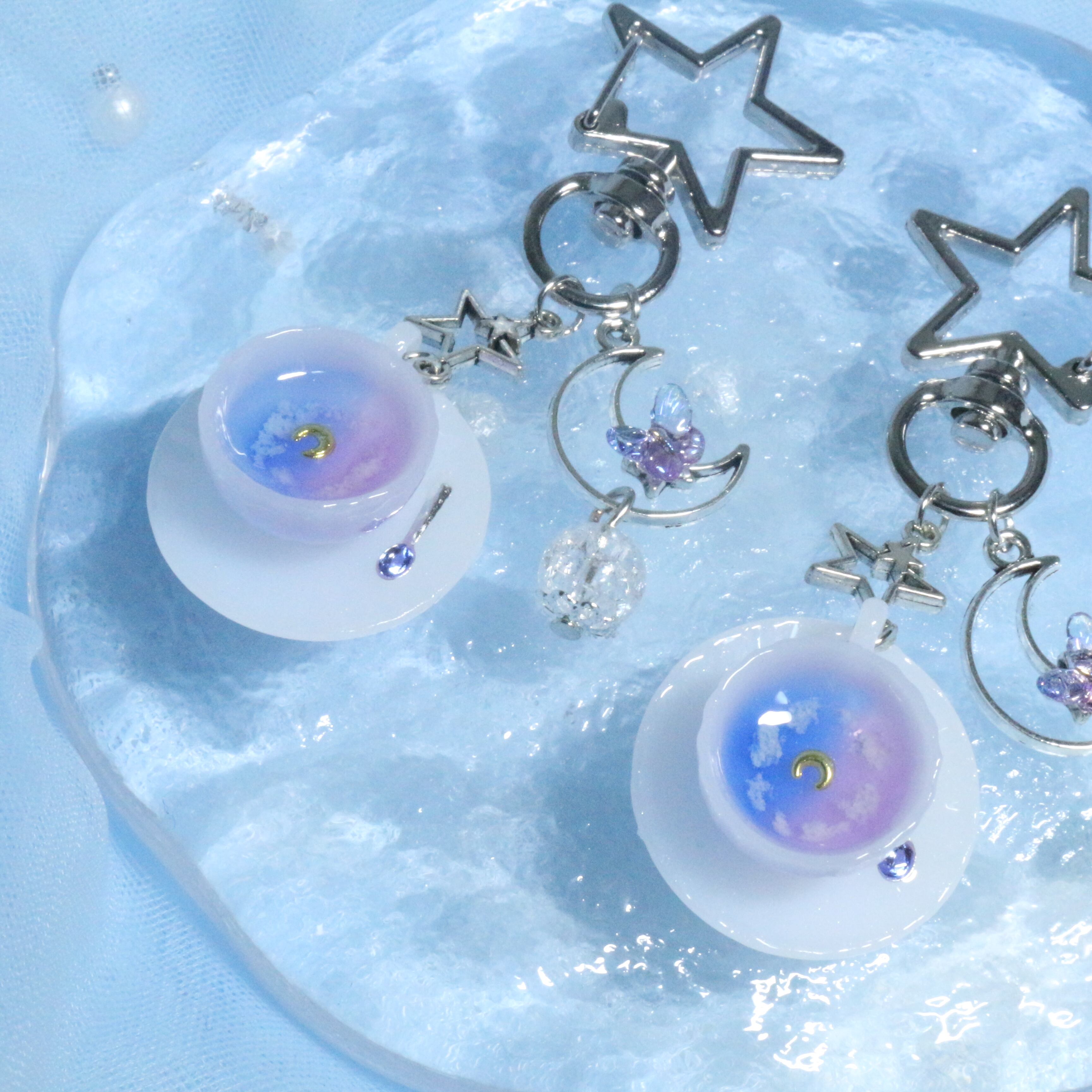 小さなスプーンには2色のお茶を混ぜ合わせた色がついており、お茶の雲達はかき混ぜられてぐるぐると月の周りを踊ってます。