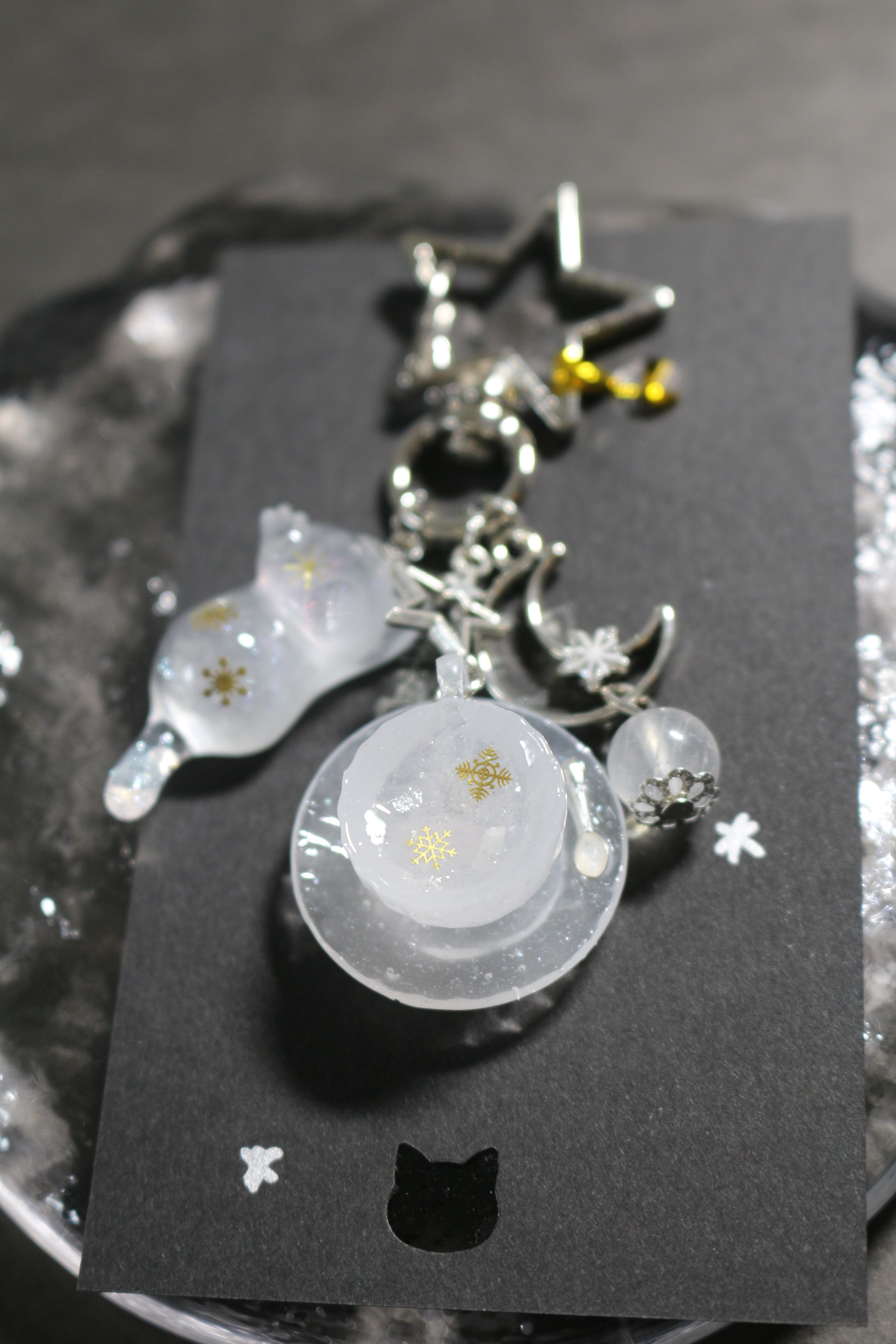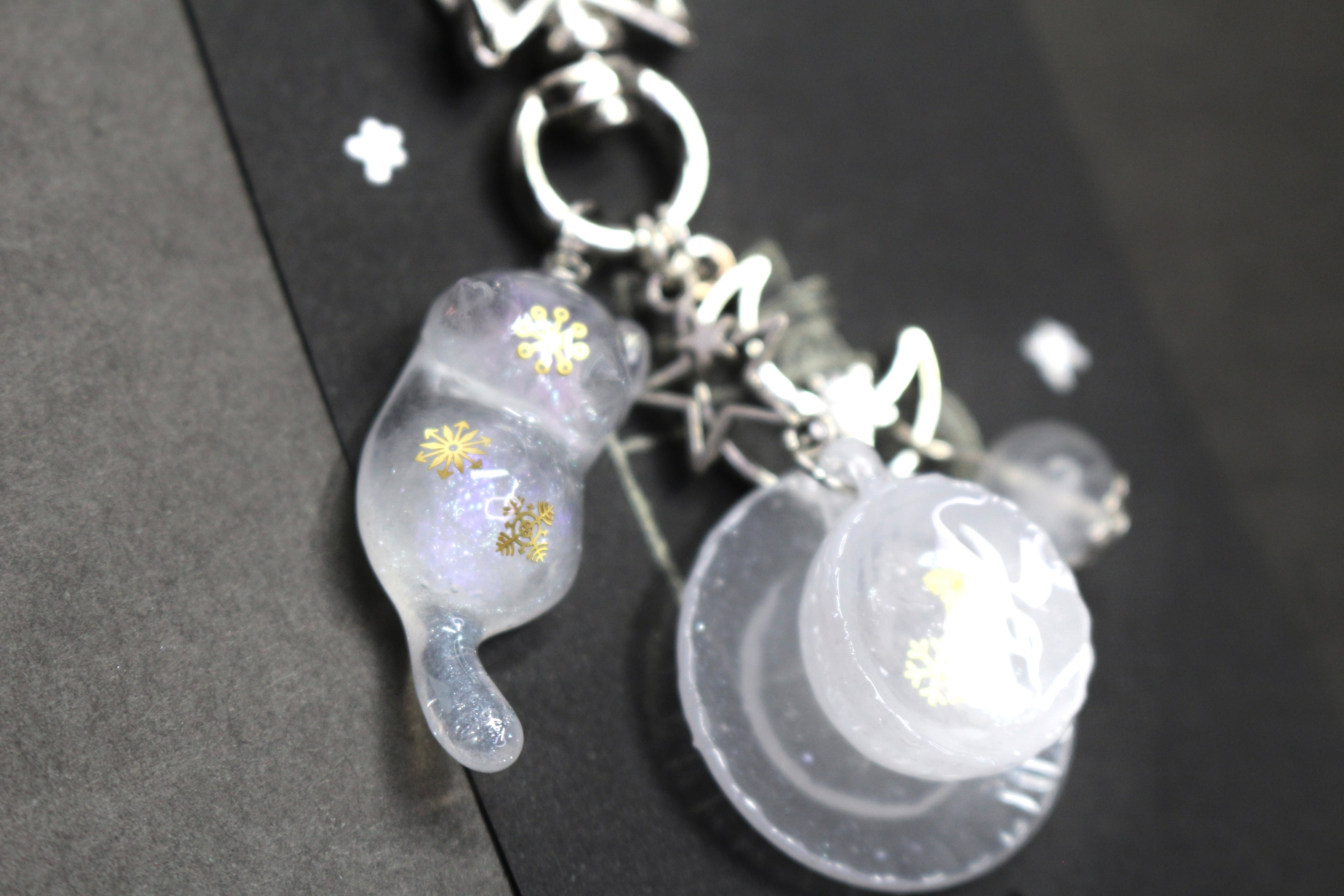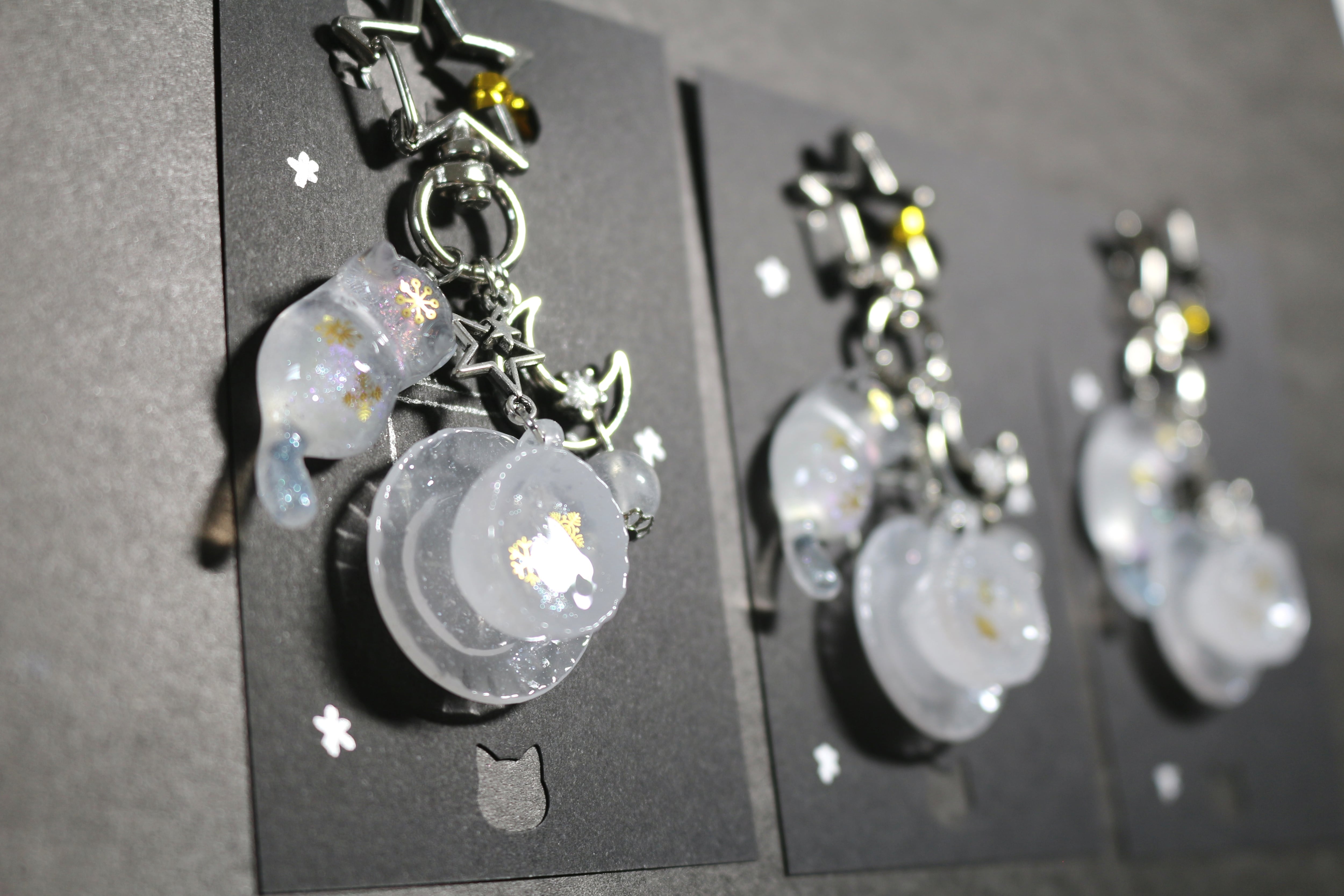 冬×ローズクォーツ×ムーンストーンのお茶会と紹介された猫キーホルダー