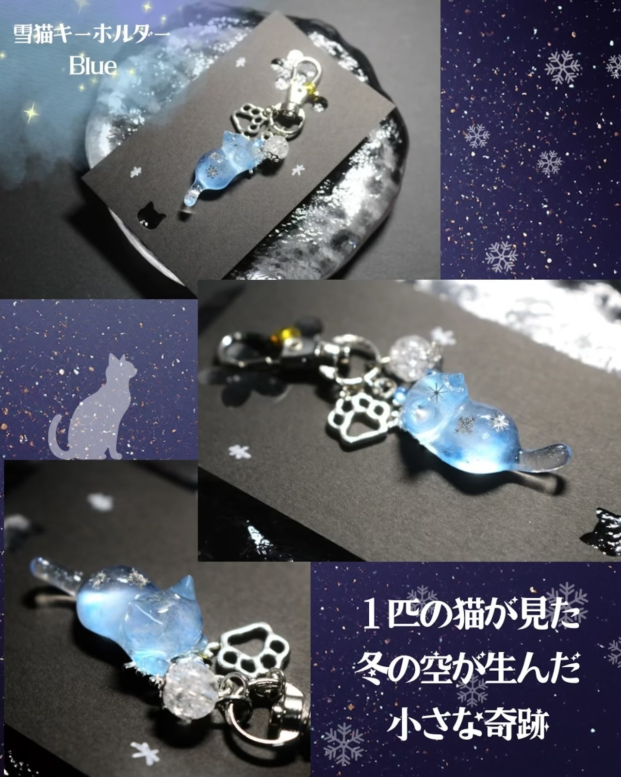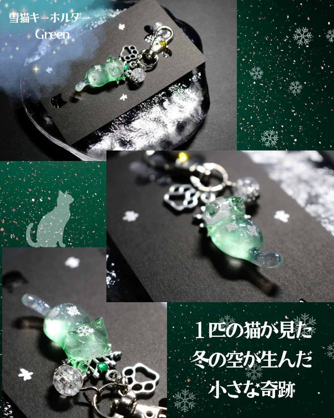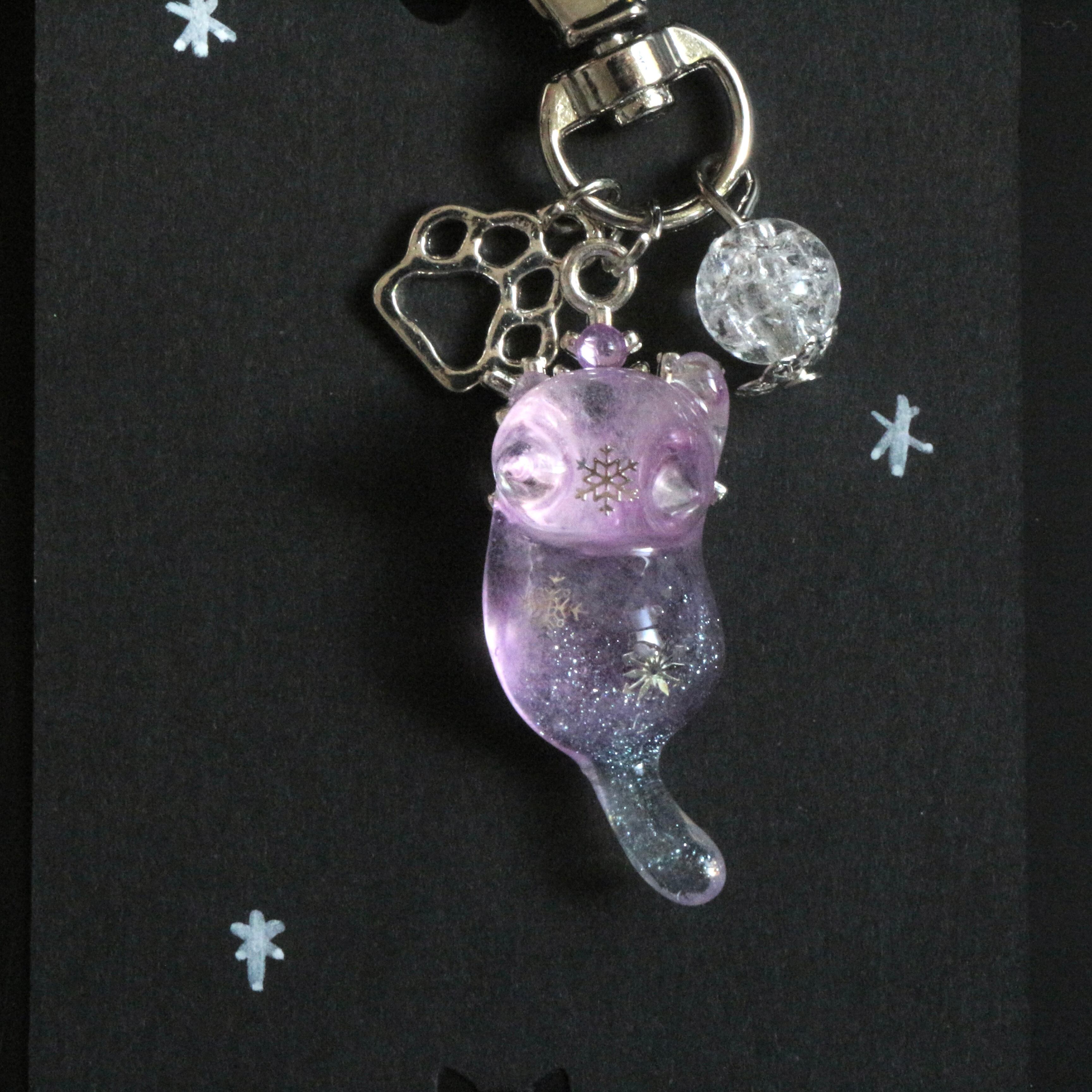 透き通る猫ちゃんの中には、そっと舞う氷の結晶を閉じ込めました。