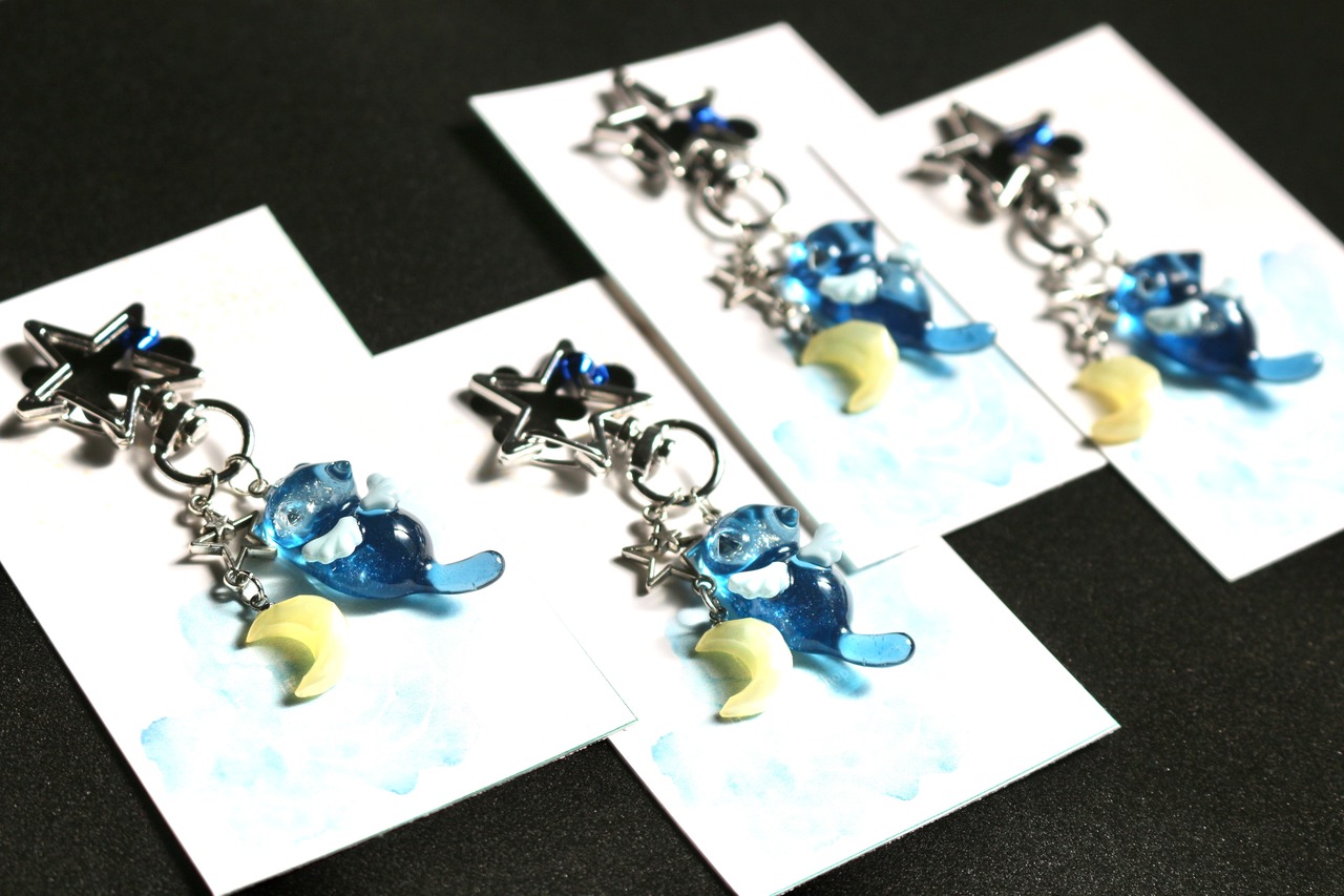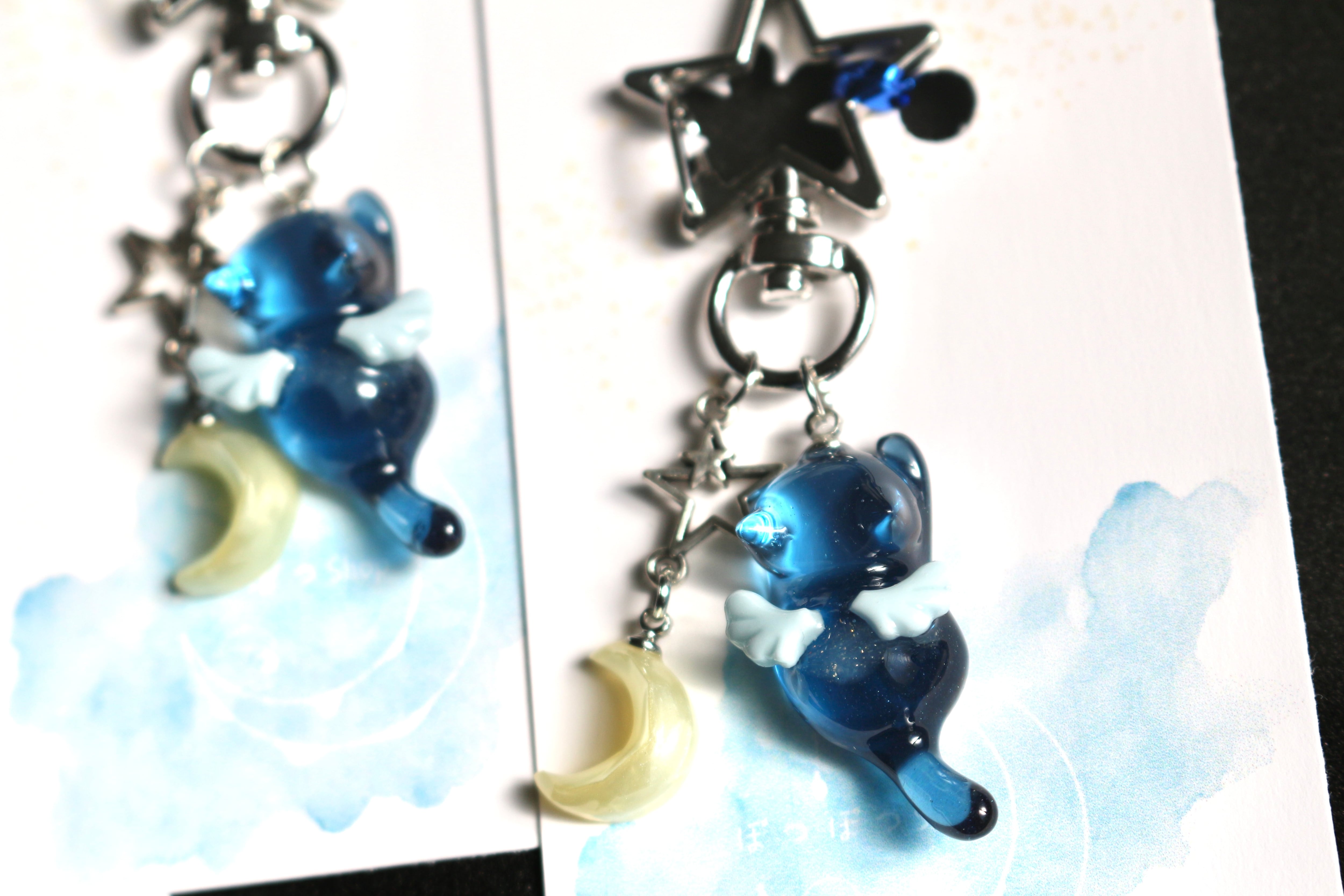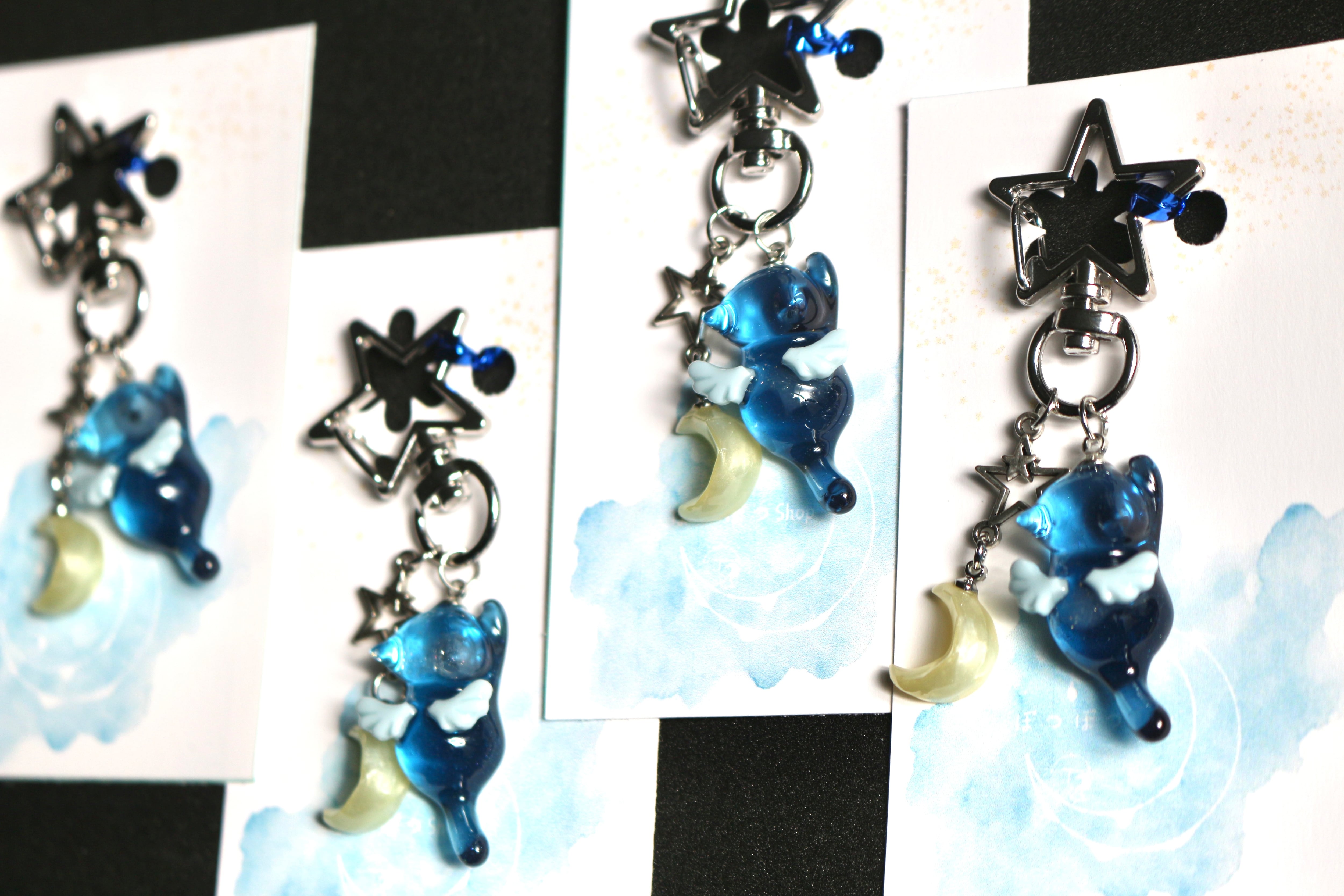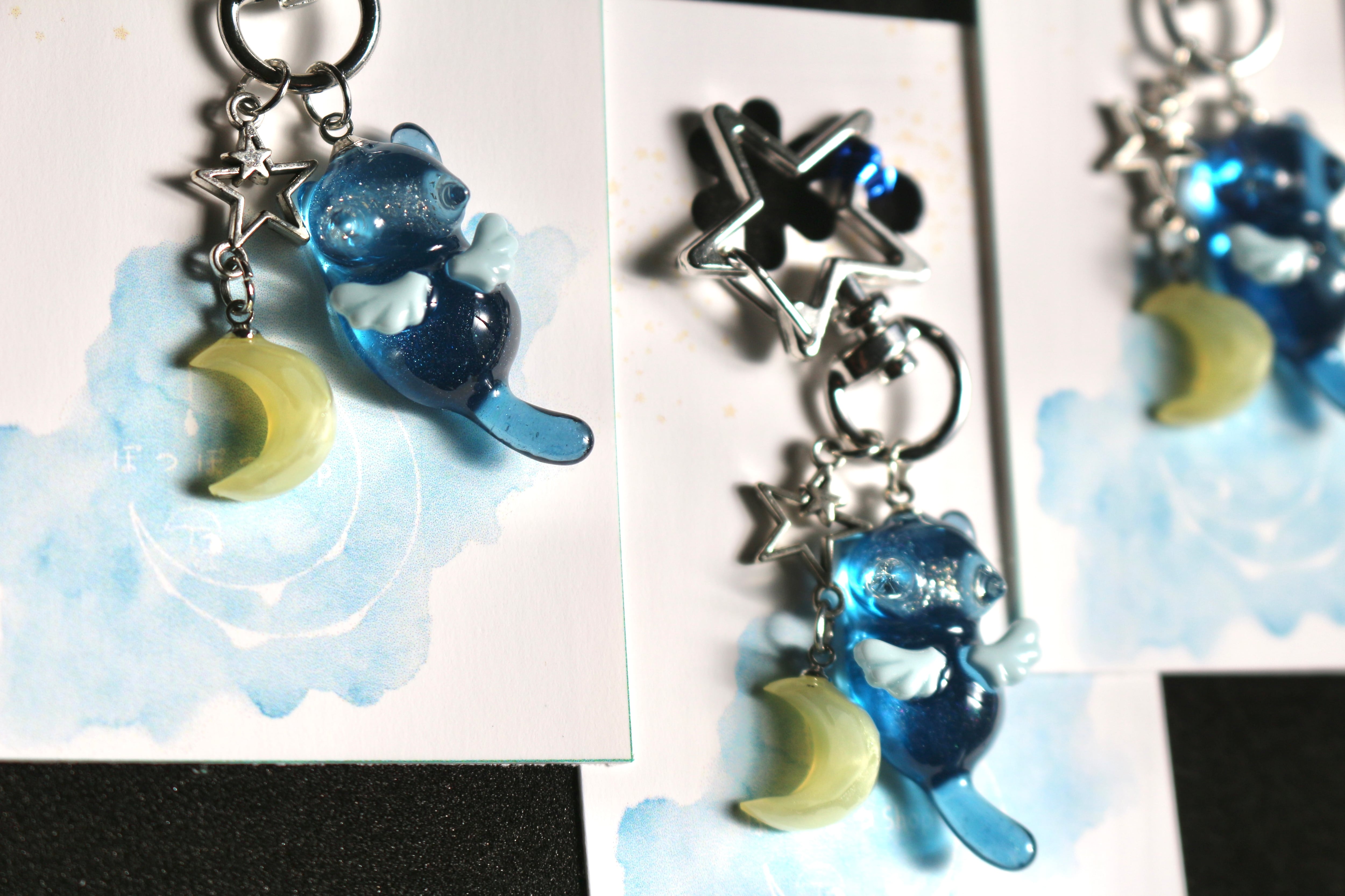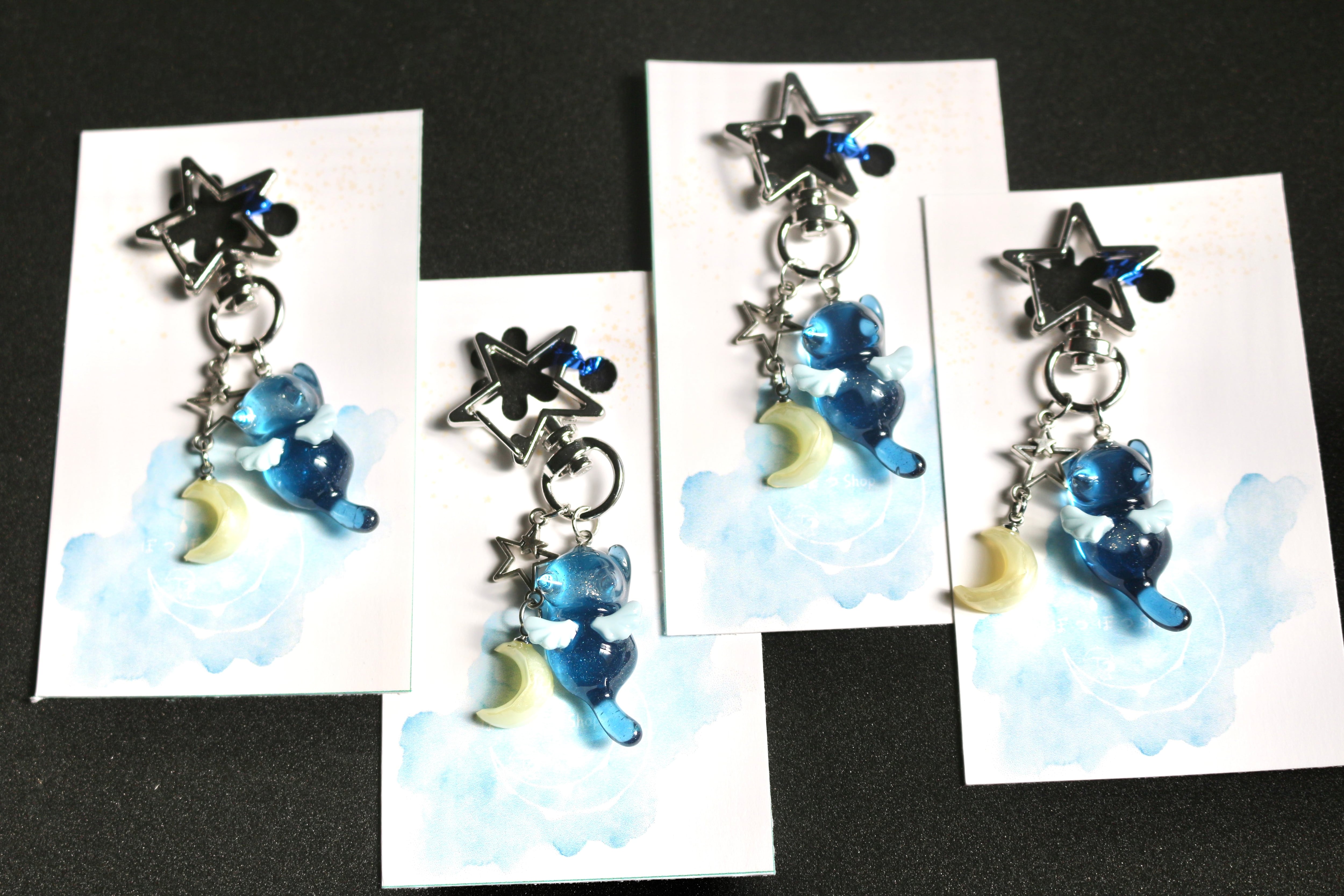小さなお月様と天使猫ちゃんキーホルダー