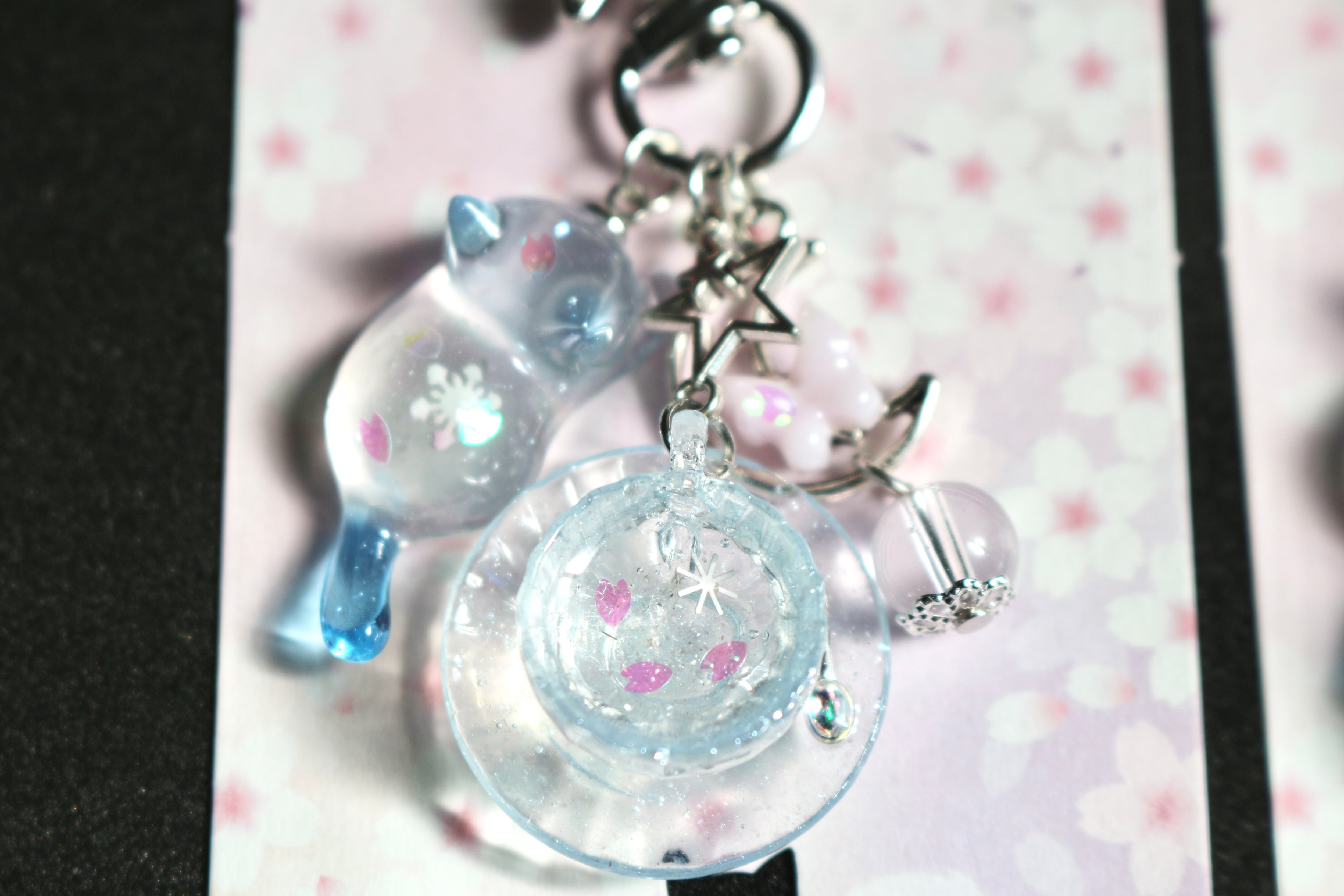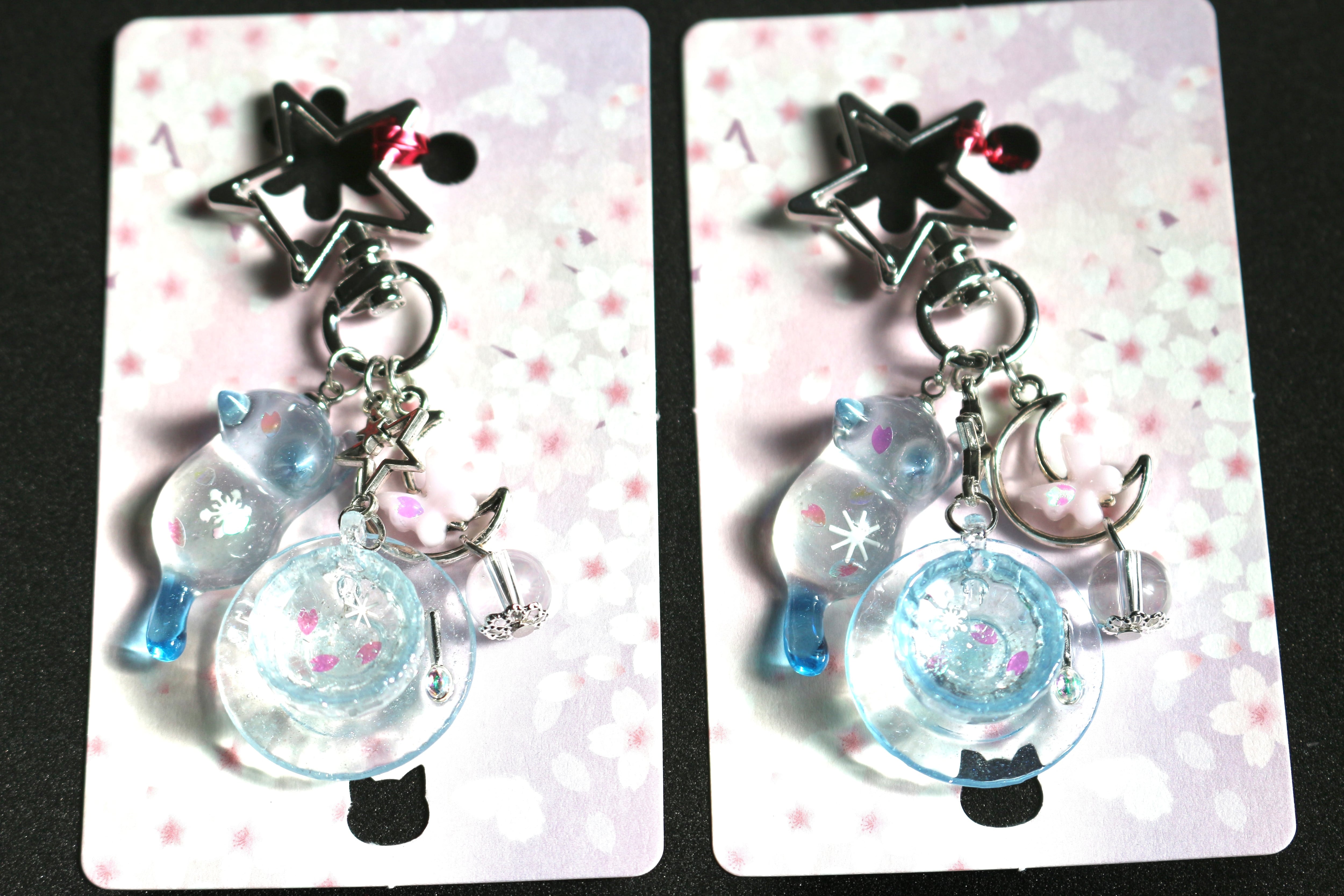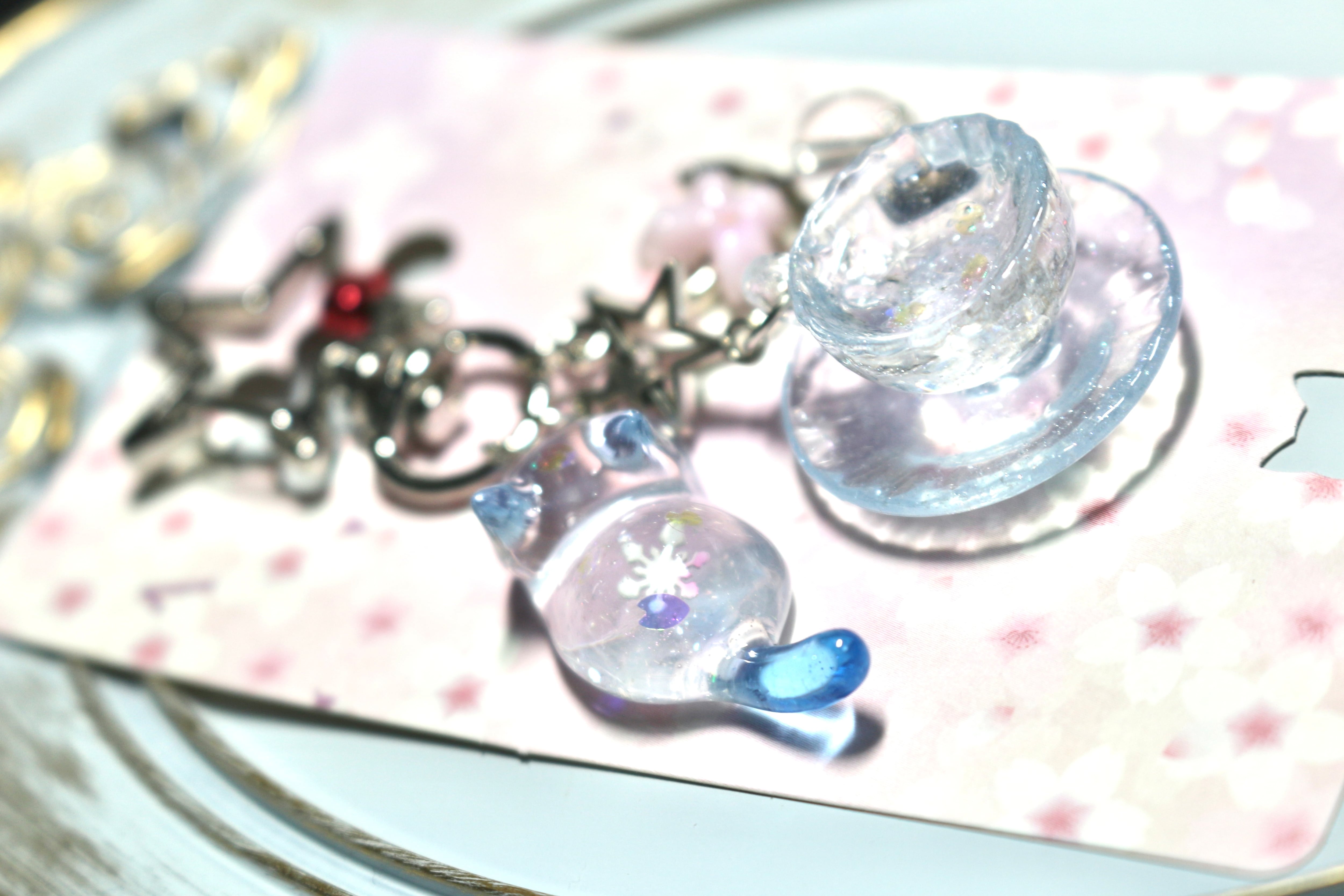 雪解け水晶のお茶会と紹介された猫キーホルダー