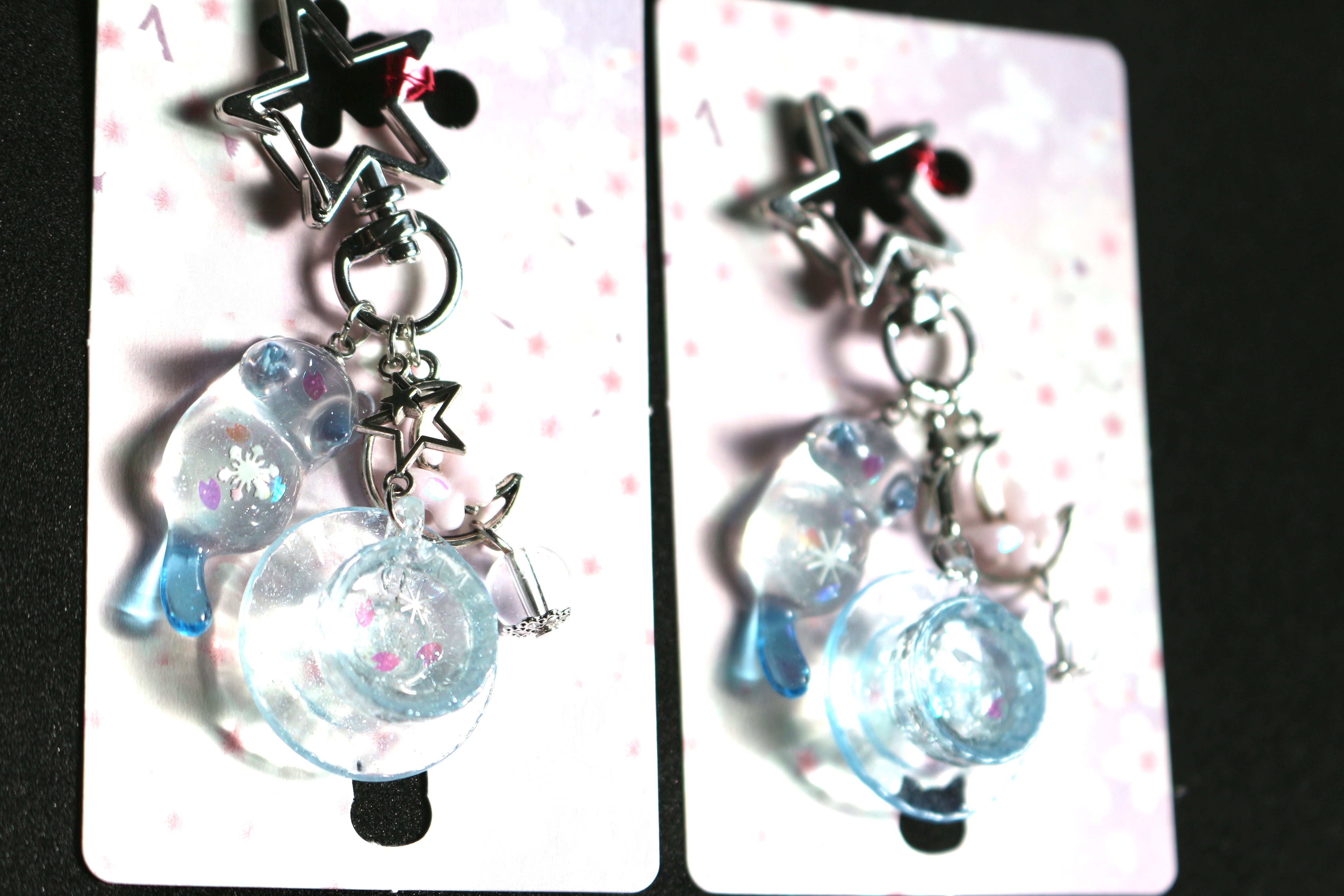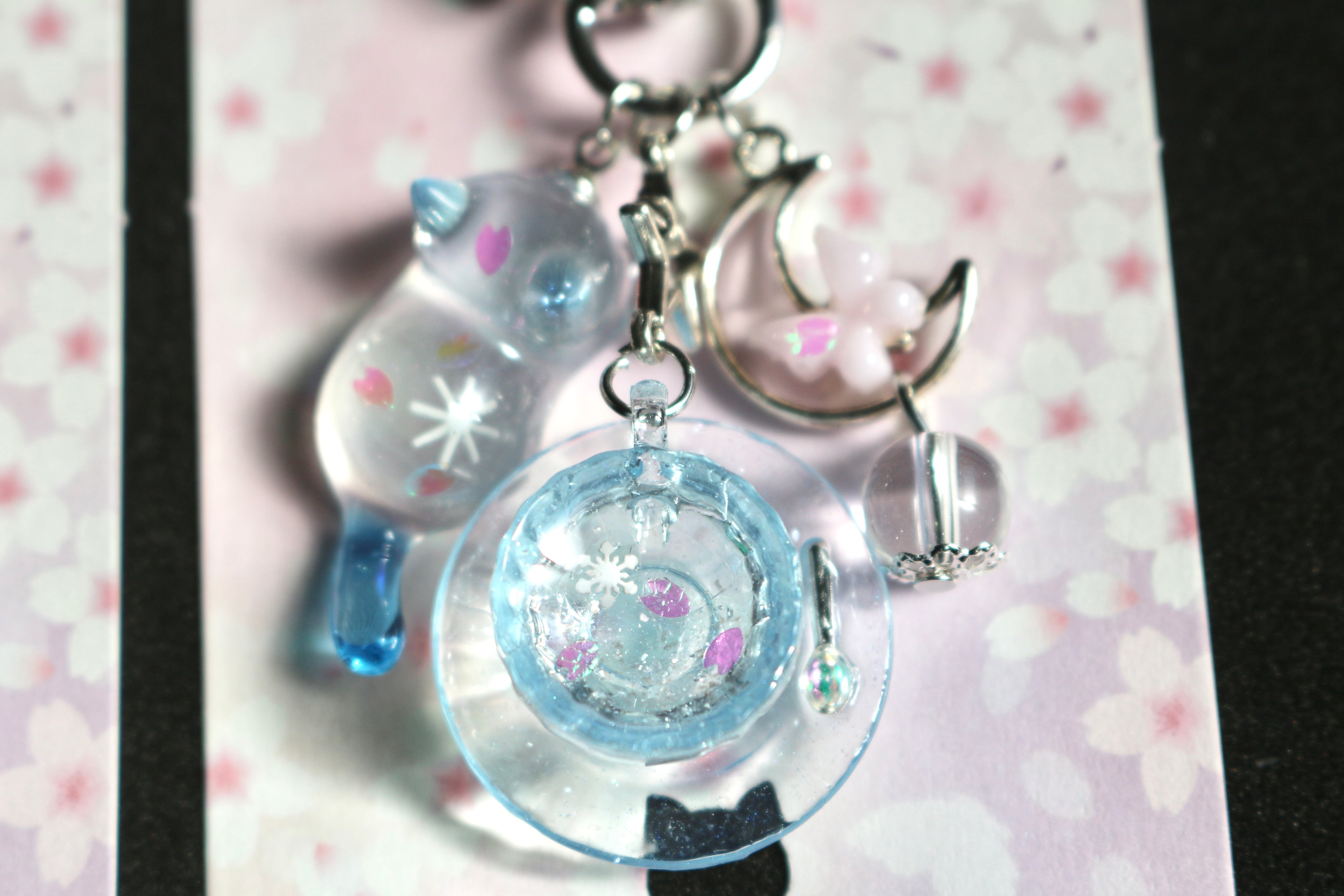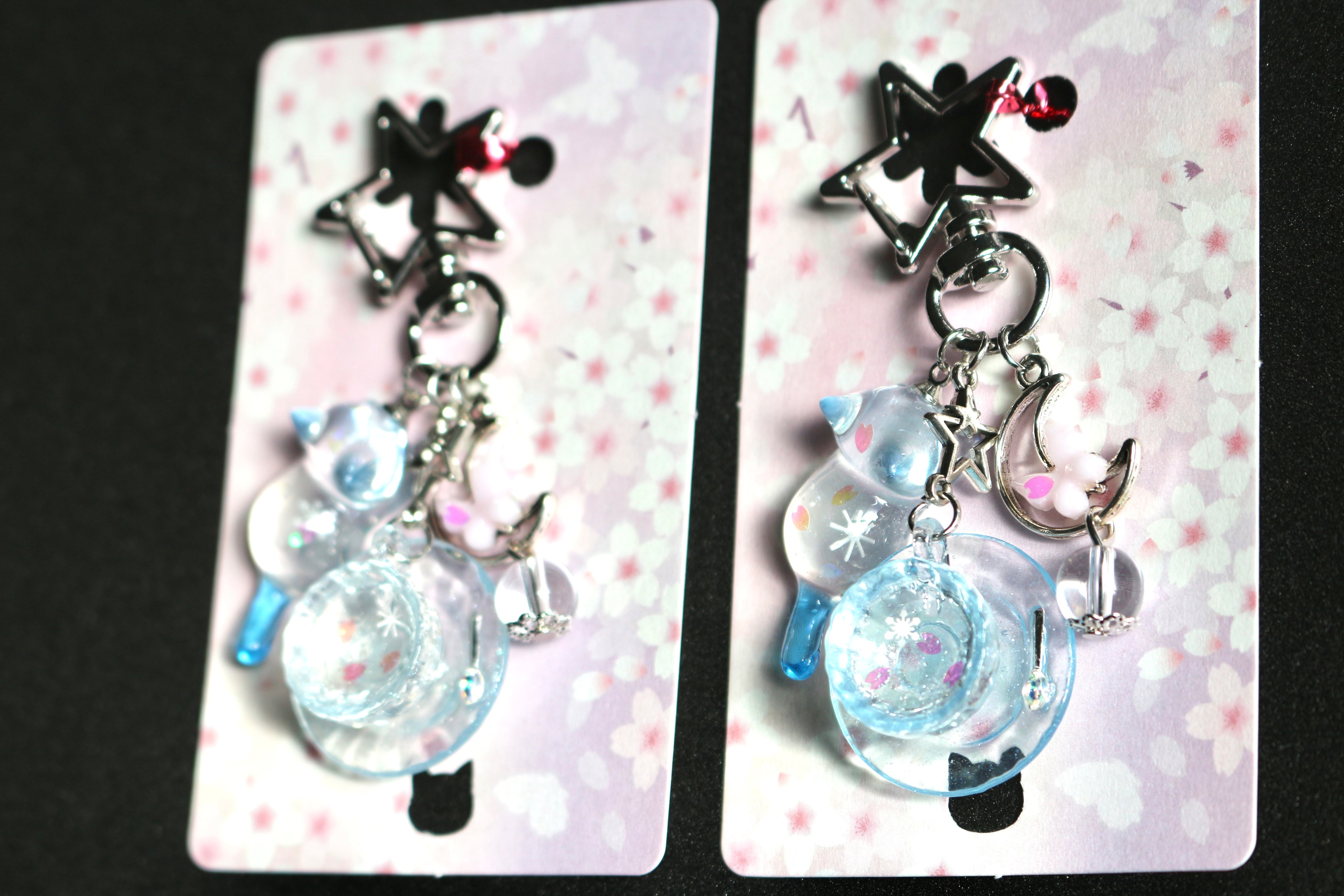 雪解け水晶のお茶会と紹介された猫キーホルダー